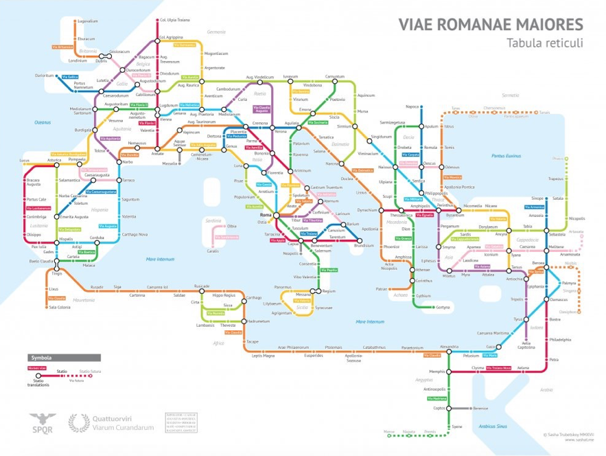 Thank you Sasha Trubetskoy for this! Could you imagine a entire Roman empire map, combining well-known historic roads, like the Via Appia, with lesser-known ones (in somes cases given imagined names)? Now we can… If you want to get a sense of scale, it would take, Trubetskoy tells us, “two months to walk on foot from Rome to Byzantium. If you had a horse, it would only take you a month.” Please, have a look!